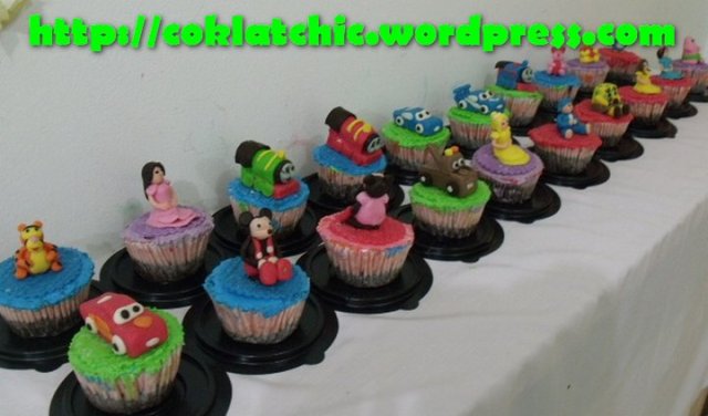 Cupcake topper 3D Terbuat dari kue yang dipahat,no styrofoam. Pelapis terbuat dari coklat bukan fondant atau sugar icing. Posted with WordPress for BlackBerry. Share this: Share on Facebook (Opens in new window) Facebook Like Loading... Related