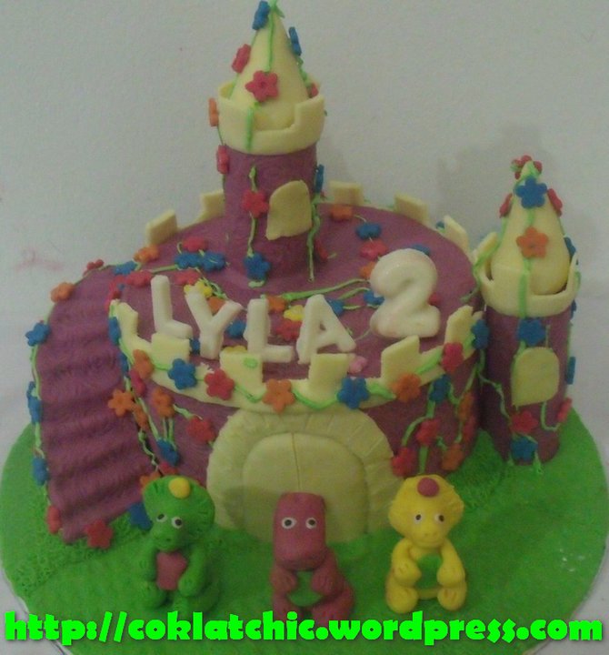Kue ulang tahun dengan tema Cake Castle Barney model ini mulai dari Rp 200 ribu