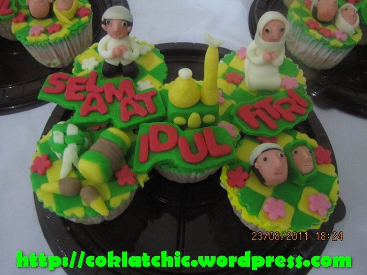 Cupcake set lebaran Terbuat dari kue yang dipahat,no styrofoam. Pelapis terbuat dari coklat bukan fondant atau sugar icing. Posted with WordPress for BlackBerry. Share this: Click to share on Facebook (Opens in new window) Facebook Like Loading... Related
