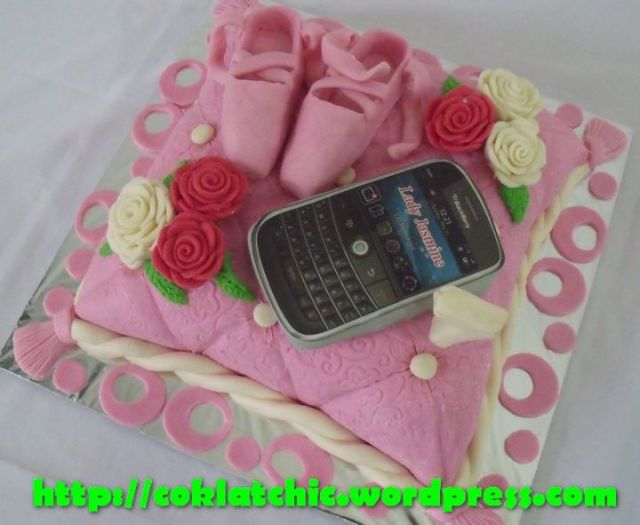 Kue ulang tahun dengan tema Cake Sepatu Balet dan blackberry model ini mulai dari harga Rp 375 ribu