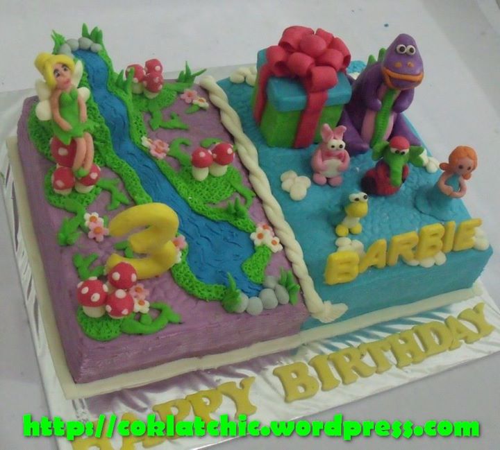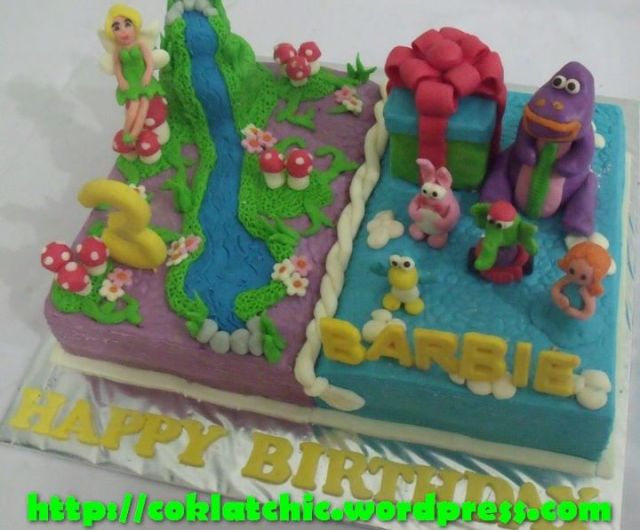 Kue ulang tahun dengan tema Cake Tinkerbell dan Dibo model ini mulai dari harga Rp 400 ribu