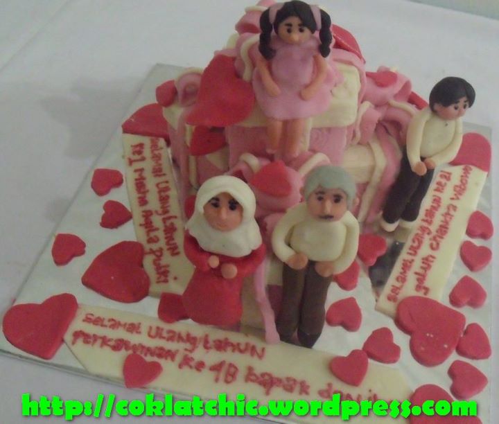 Miniature cake anniversary Terbuat dari kue yang dipahat,no styrofoam. Pelapis terbuat dari coklat bukan fondant atau sugar icing. Posted with WordPress for BlackBerry. Share this: Click to share on Facebook (Opens in new window) Facebook Like Loading... Related