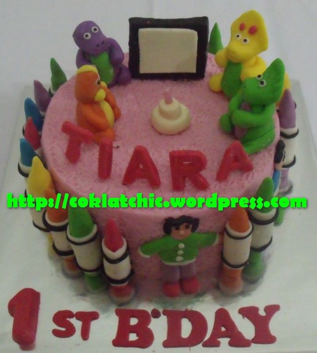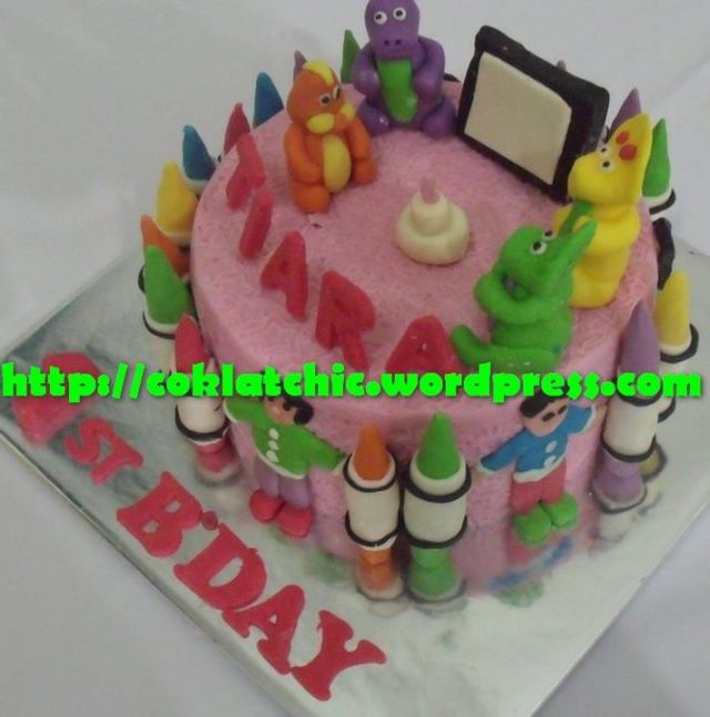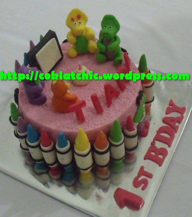 Kue ulang tahun dengan tema Cake Barney dan teman-teman model ini mulai dari Rp 200 ribu