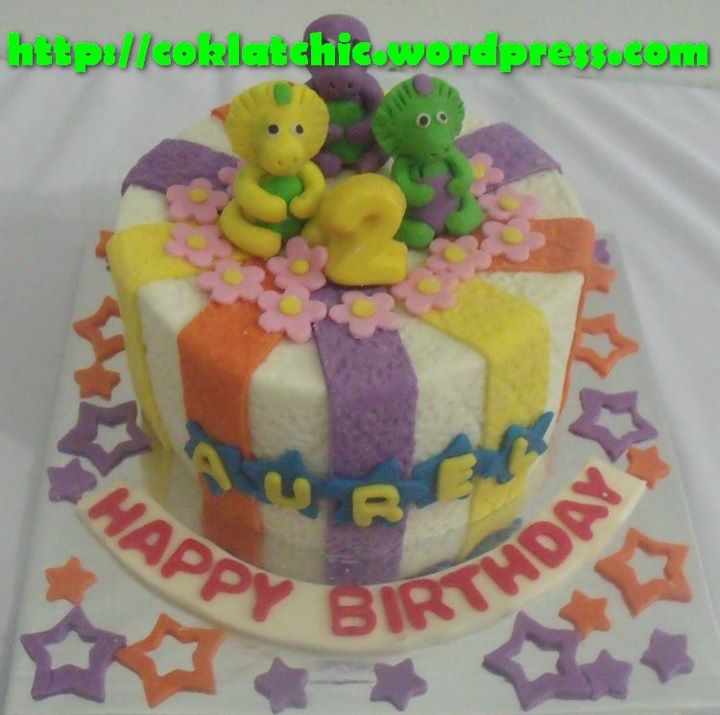 Kue ulang tahun dengan tema Cake Barney dan teman-teman model ini mulai dari Rp 200 ribu