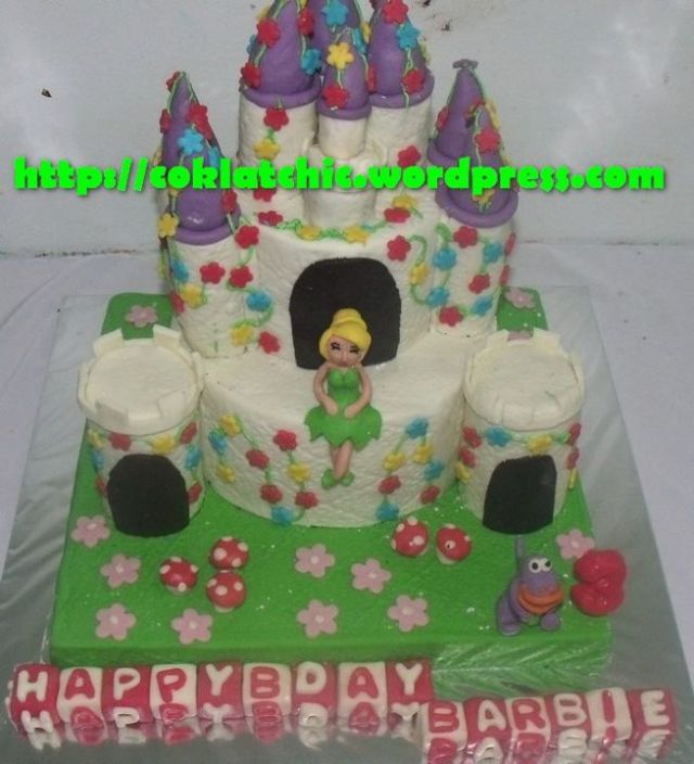Kue ulang tahun dengan tema Cake Tinkerbell dan Dibo model ini mulai dari harga Rp 750 ribu
