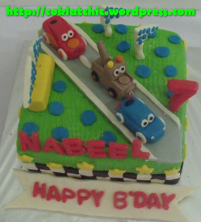 Cake cars – NABEEL Kue ulang tahun dengan tema Cake cars model ini mulai dari Rp 300 ribu Terbuat dari kue yang dipahat,no styrofoam. Pelapis terbuat dari coklat bukan fondant atau sugar icing. Posted with WordPress for BlackBerry. Share this: Click to share on Facebook (Opens in new window) Facebook Like Loading... Related