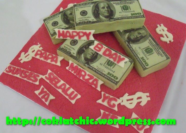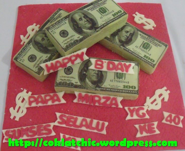 Kue ulang tahun dengan tema Cake tumpukan uang dollar model ini mulai dari harga Rp 300 ribu