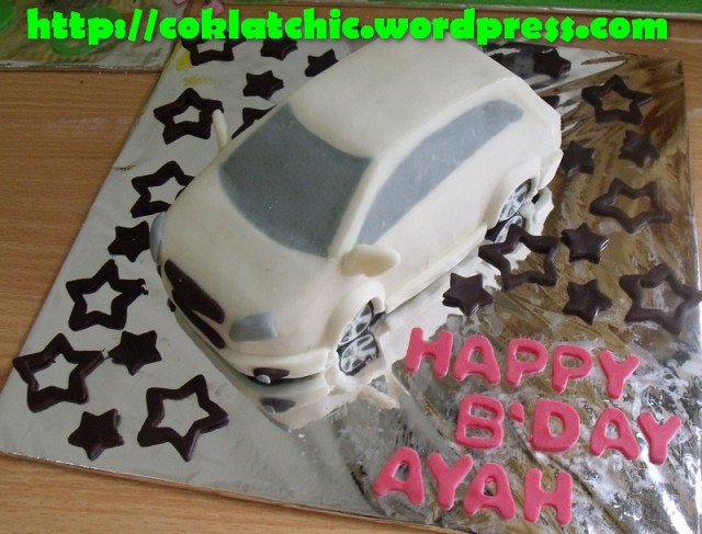 Terbuat dari kue yang dipahat,no styrofoam. Pelapis terbuat dari coklat bukan fondant atau sugar icing. Posted with WordPress for BlackBerry.