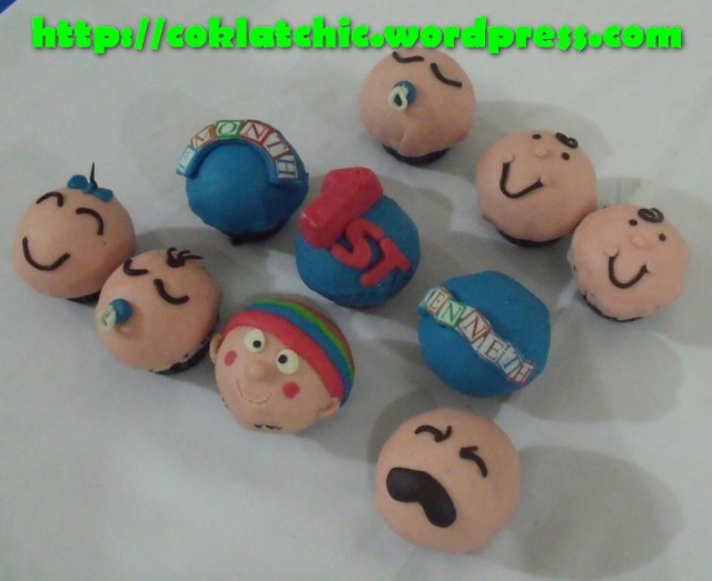 Minicupcake baby – KENNETH Terbuat dari kue yang dipahat,no styrofoam. Pelapis terbuat dari coklat bukan fondant atau sugar icing. Posted with WordPress for BlackBerry. Share this: Share on Facebook (Opens in new window) Facebook Like Loading... Related