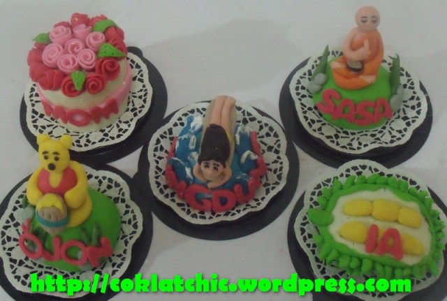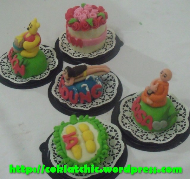 Minicake pooh,minicake pot bunga,minicake suffer girl,minicake budha dan minicake durian Terbuat dari kue yang dipahat,no styrofoam. Pelapis terbuat dari coklat bukan fondant atau sugar icing. Posted with WordPress for BlackBerry. Share this: Share on Facebook (Opens in new window) Facebook Like Loading... Related