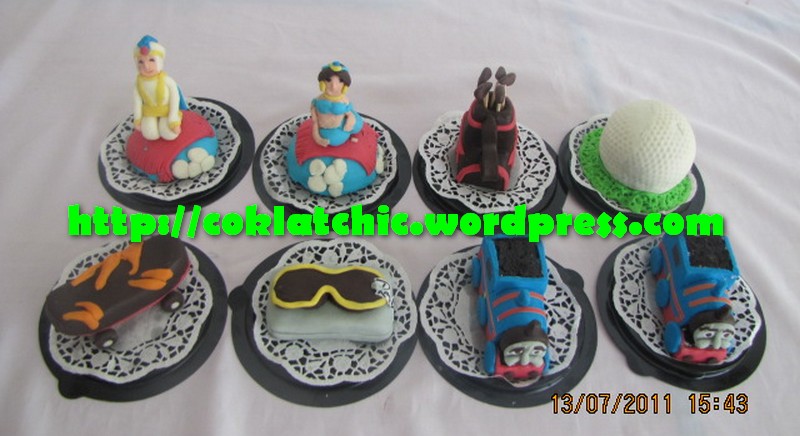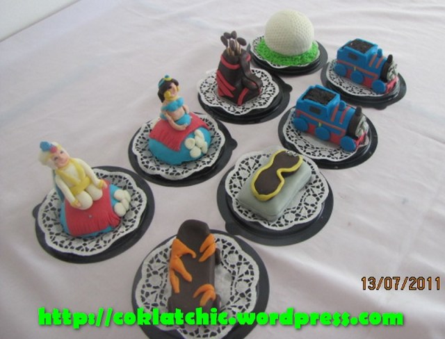 Minicake princess, minicake kacamata rayban, minicake skateboard, minicake bola golf, minicake stick golf Terbuat dari kue yang dipahat,no styrofoam. Pelapis terbuat dari coklat bukan fondant atau sugar icing. Posted with WordPress for BlackBerry. Share this: Click to share on Facebook (Opens in new window) Facebook Like Loading... Related