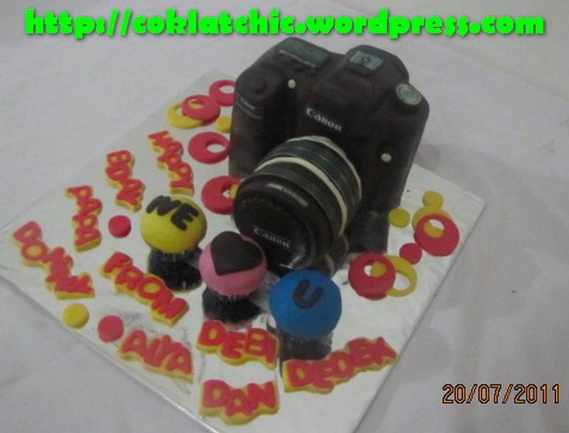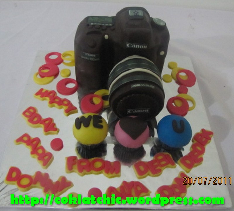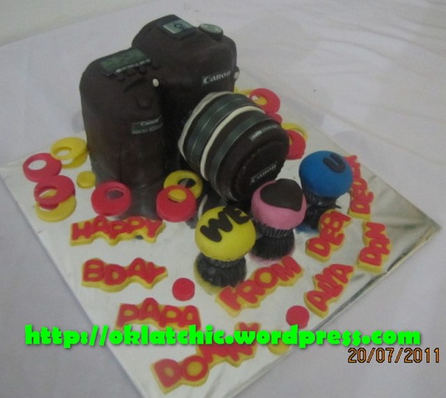 Kue ulang tahun dengan tema Cake Kamera Canon dan minicupcake alphabet model ini mulai dari Rp 325 ribu