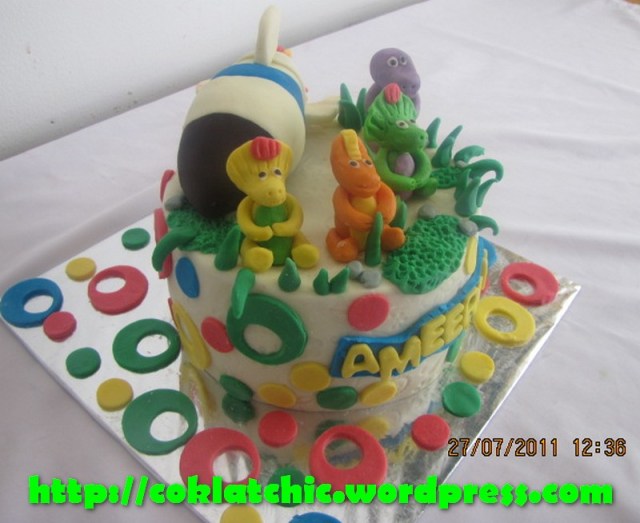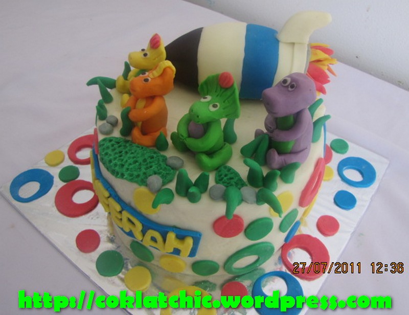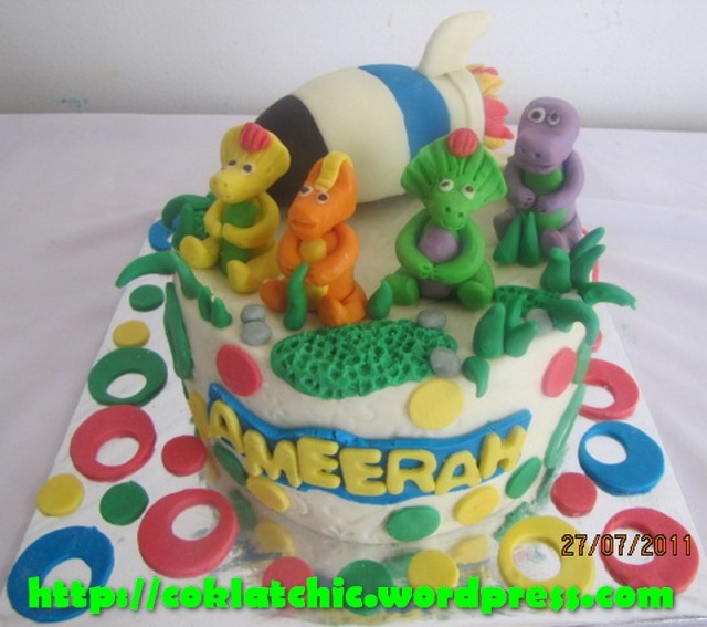 Kue ulang tahun dengan tema Cake Barney dan roket model ini mulai dari harga Rp 200 ribu