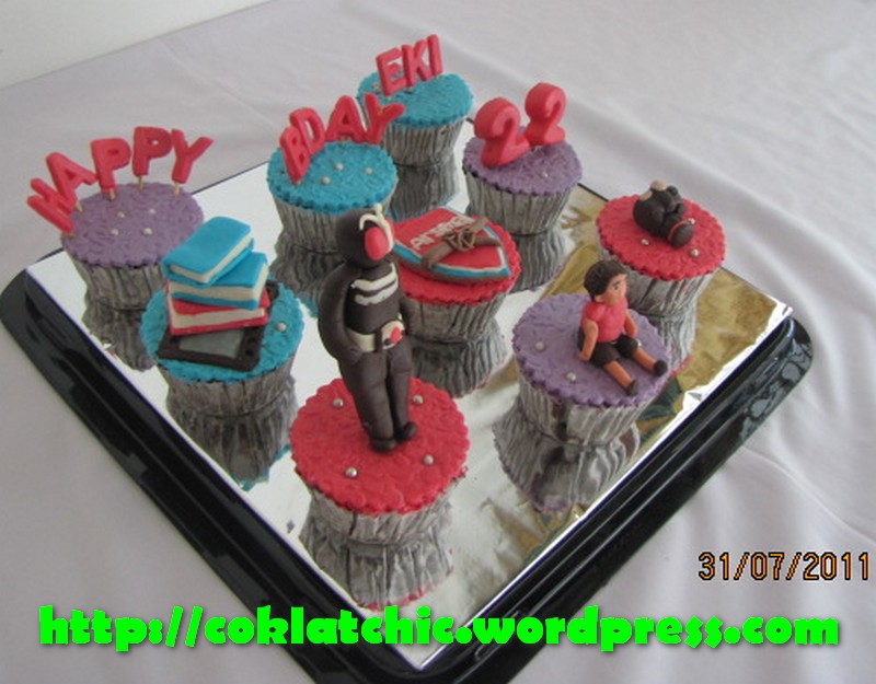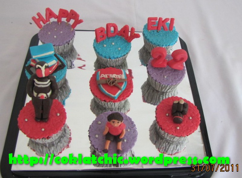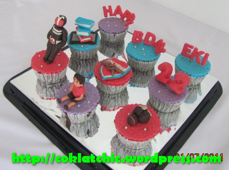 Cupcake set arsenal,kamen rider,buku, dan kamera slr – EKI Terbuat dari kue yang dipahat,no styrofoam. Pelapis terbuat dari coklat bukan fondant atau sugar icing. Posted with WordPress for BlackBerry. Share this: Share on Facebook (Opens in new window) Facebook Like Loading... Related