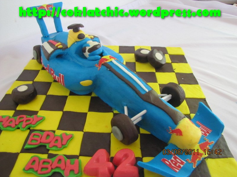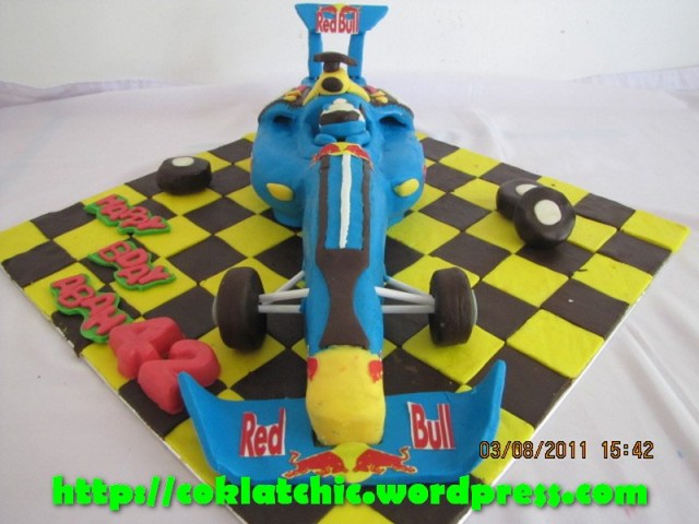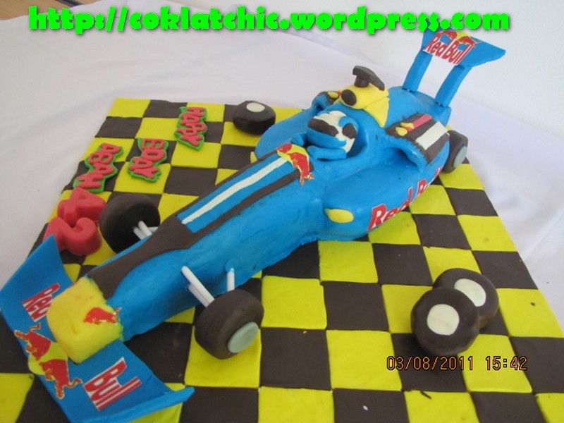 Kue ulang tahun dengan tema Cake Formula One Sebastian Vettel model ini mulai dari harga Rp 300 ribu