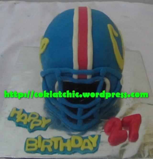 Kue ulang tahun dengan tema Cake American Football Helm model ini mulai harga Rp 200 ribu