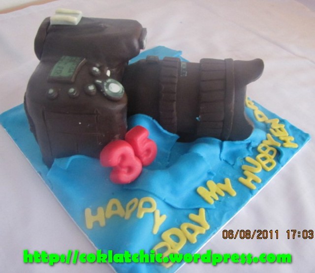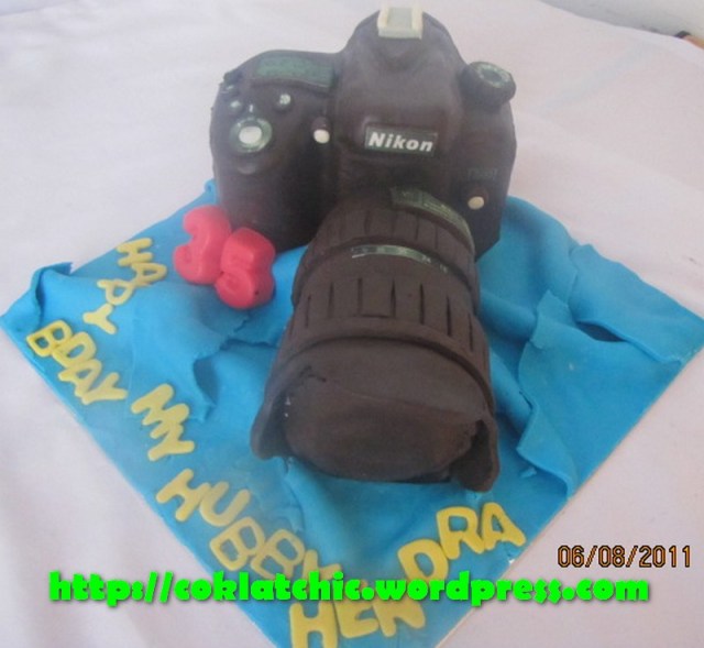 Kue ulang tahun dengan tema Cake Nikon D90 dengan tele panjang model ini mulai dari harga Rp 450 ribu