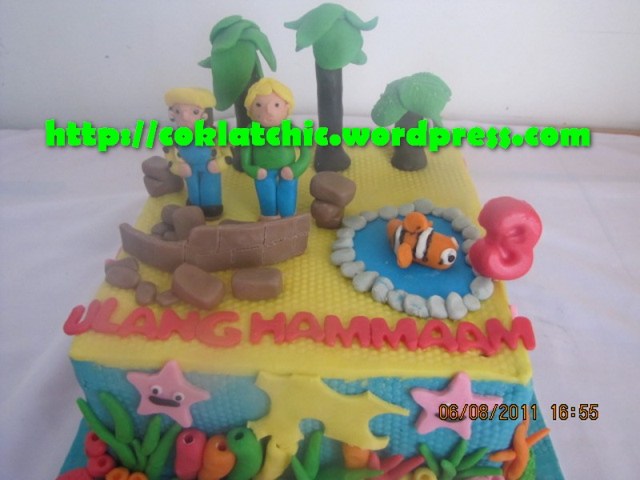 Terbuat dari kue yang dipahat,no styrofoam. Pelapis terbuat dari coklat bukan fondant atau sugar icing. Posted with WordPress for BlackBerry.
