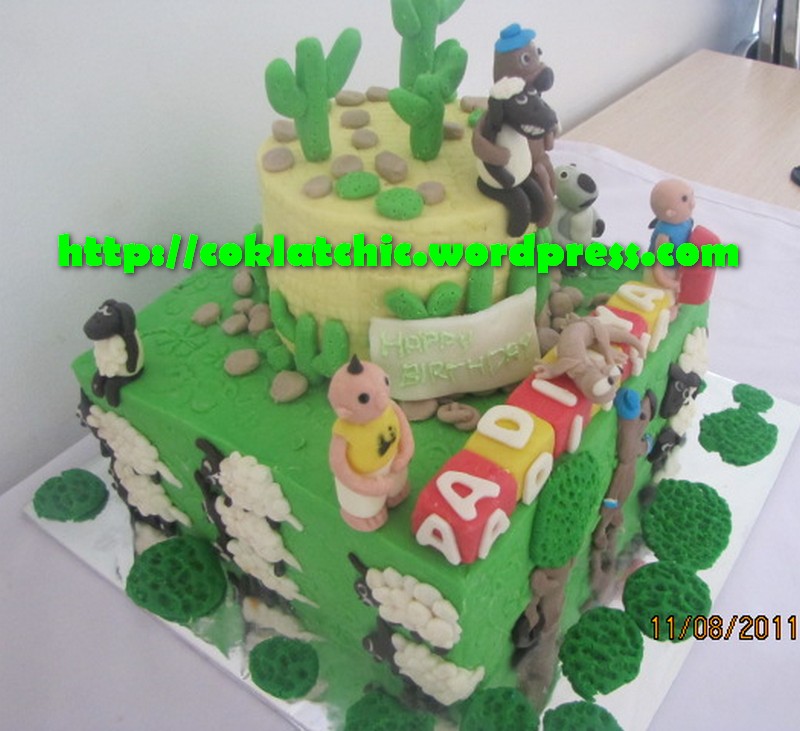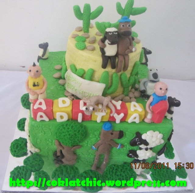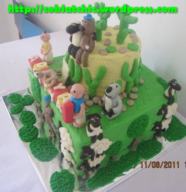 Kue ulang tahun dengan tema Cake Bernard Bear,ipin upin,shaun the sheep dan oscar the oasis model ini mulai dari harga Rp 450 ribu