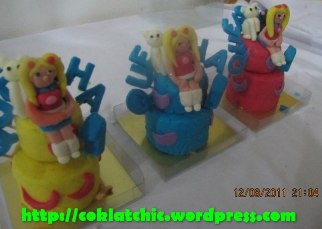 Minicake sailormoon – QUEISHA Terbuat dari kue yang dipahat,no styrofoam. Pelapis terbuat dari coklat bukan fondant atau sugar icing. Posted with WordPress for BlackBerry. Share this: Share on Facebook (Opens in new window) Facebook Like Loading... Related