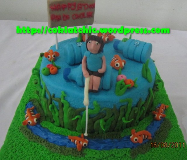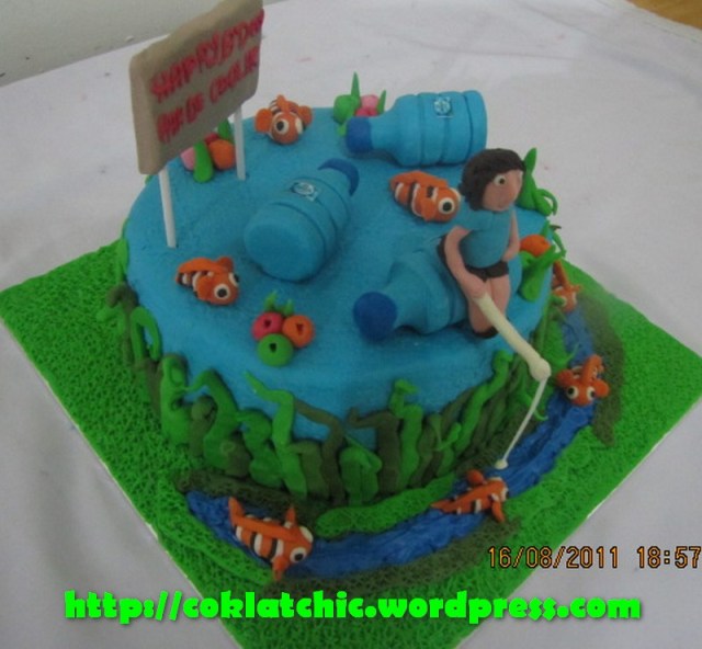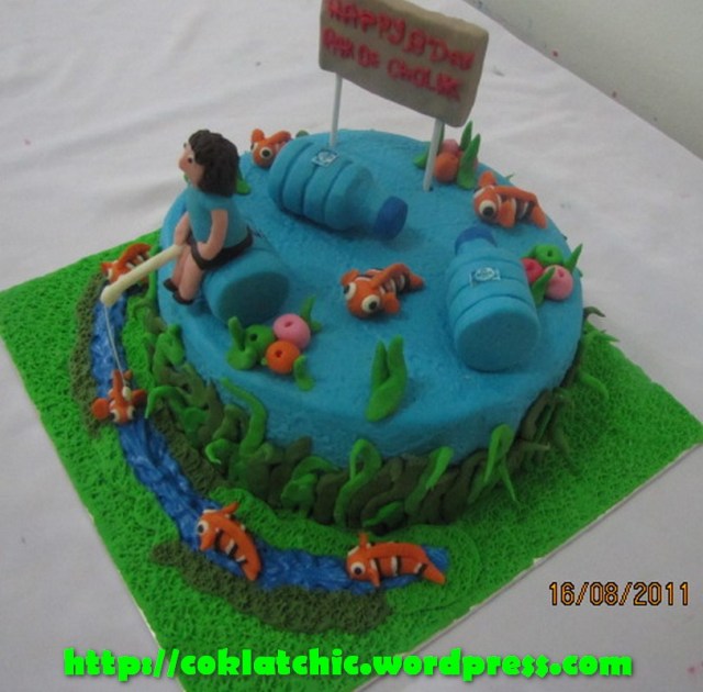 Kue ulang tahun dengan tema Cake memancing dan aqua galon model ini mulai dari harga Rp 375 ribu
