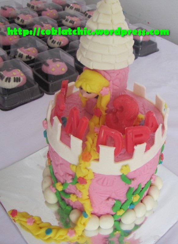 Kue ulang tahun dengan tema Cake Rapunzel model ini mulai dari harga Rp 150 ribu