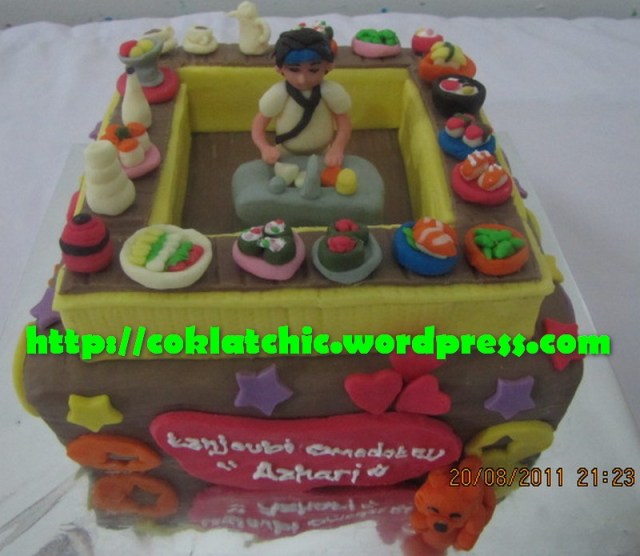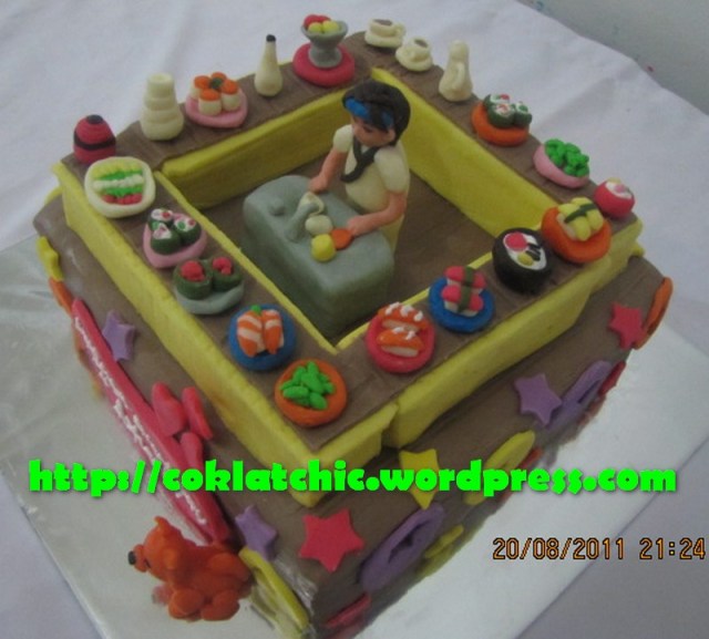 Kue ulang tahun dengan tema Cake Sushi Bar model ini mulai dari harga Rp 300 ribu