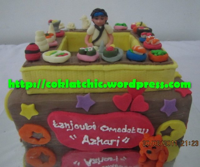 Terbuat dari kue yang dipahat,no styrofoam. Pelapis terbuat dari coklat bukan fondant atau sugar icing. Posted with WordPress for BlackBerry.