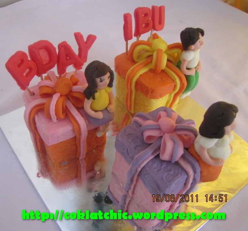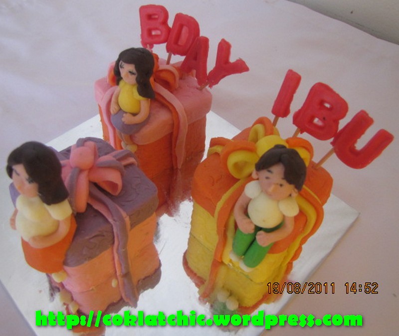 Minicake kado – RENI Terbuat dari kue yang dipahat,no styrofoam. Pelapis terbuat dari coklat bukan fondant atau sugar icing. Posted with WordPress for BlackBerry. Share this: Share on Facebook (Opens in new window) Facebook Like Loading... Related