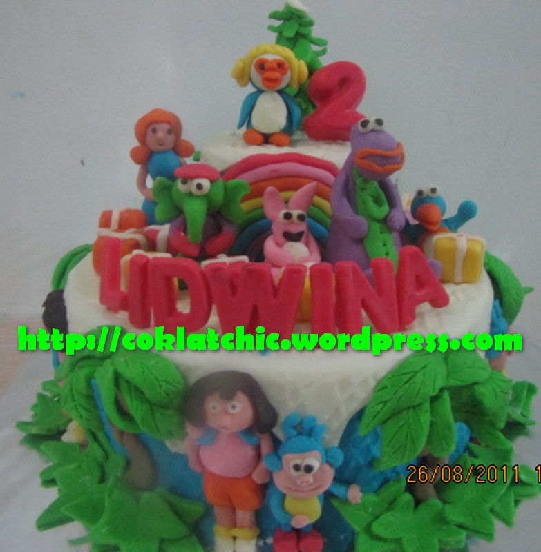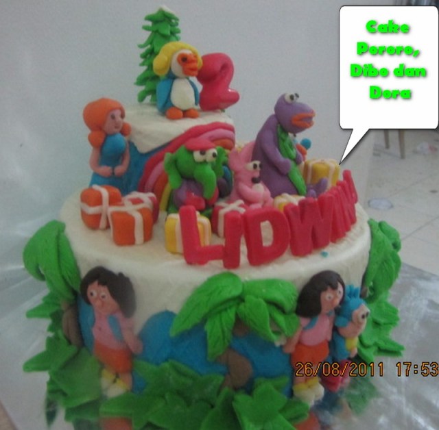 Kue ulang tahun dengan tema Cake Dibo,pororo dan dora model ini mulai dari harga Rp 350 ribu