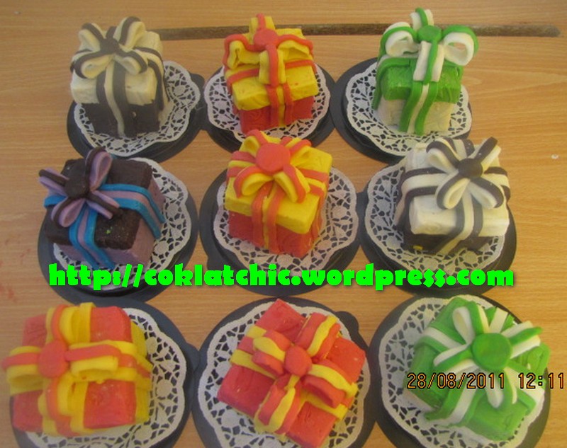 Minicake kado – AMEL Terbuat dari kue yang dipahat,no styrofoam. Pelapis terbuat dari coklat bukan fondant atau sugar icing. Posted with WordPress for BlackBerry. Share this: Click to share on Facebook (Opens in new window) Facebook Like Loading... Related