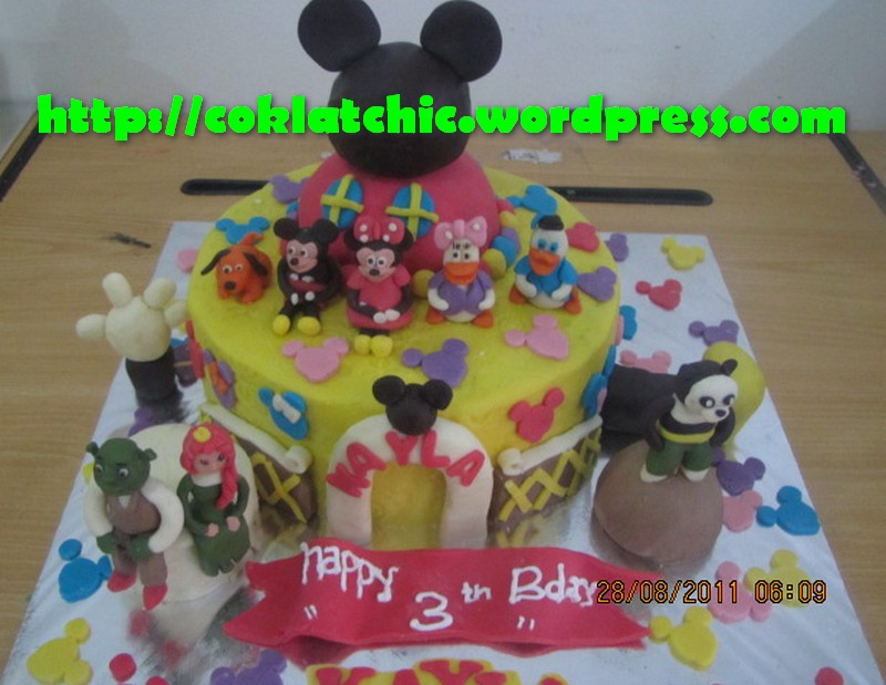 Kue ulang tahun dengan tema Cake Disney Playhouse,kungfu panda dan shrek model ini mulai dari harga Rp 450 ribu