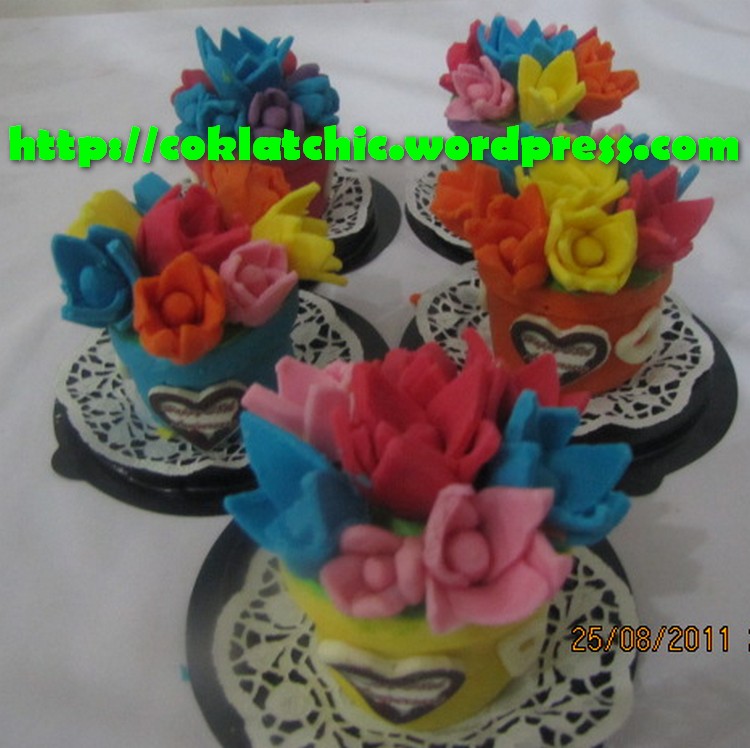 Minicake pot bunga – RISKA Terbuat dari kue yang dipahat,no styrofoam. Pelapis terbuat dari coklat bukan fondant atau sugar icing. Posted with WordPress for BlackBerry. Share this: Share on Facebook (Opens in new window) Facebook Like Loading... Related