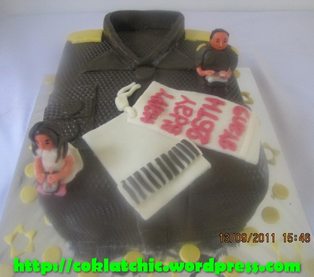 Terbuat dari kue yang dipahat,no styrofoam. Pelapis terbuat dari coklat bukan fondant atau sugar icing. Posted with WordPress for BlackBerry.