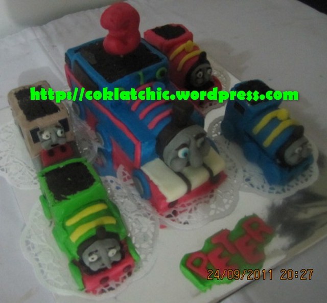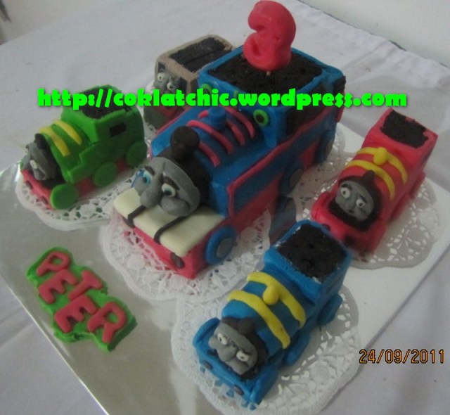 Kue ulang tahun dengan tema Cake Thomas dan minicake thomas model ini mulai dari harga Rp 300 ribu
