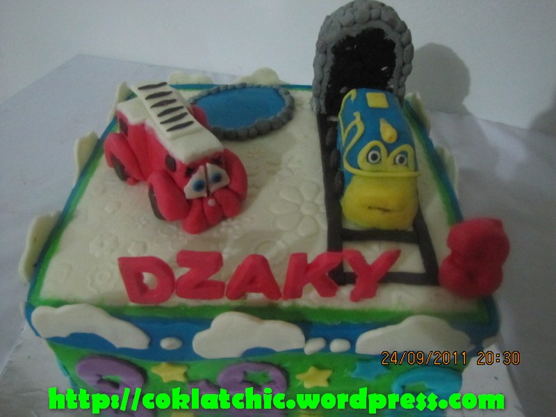 Terbuat dari kue yang dipahat,no styrofoam. Pelapis terbuat dari coklat bukan fondant atau sugar icing. Posted with WordPress for BlackBerry.