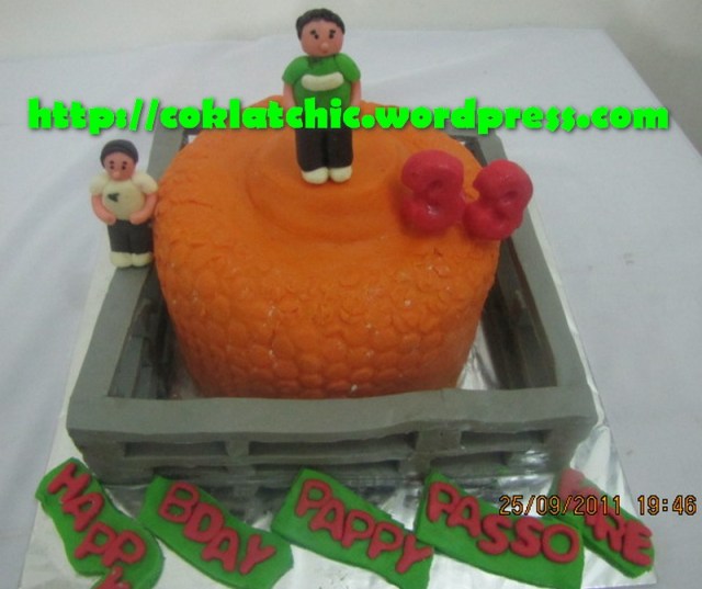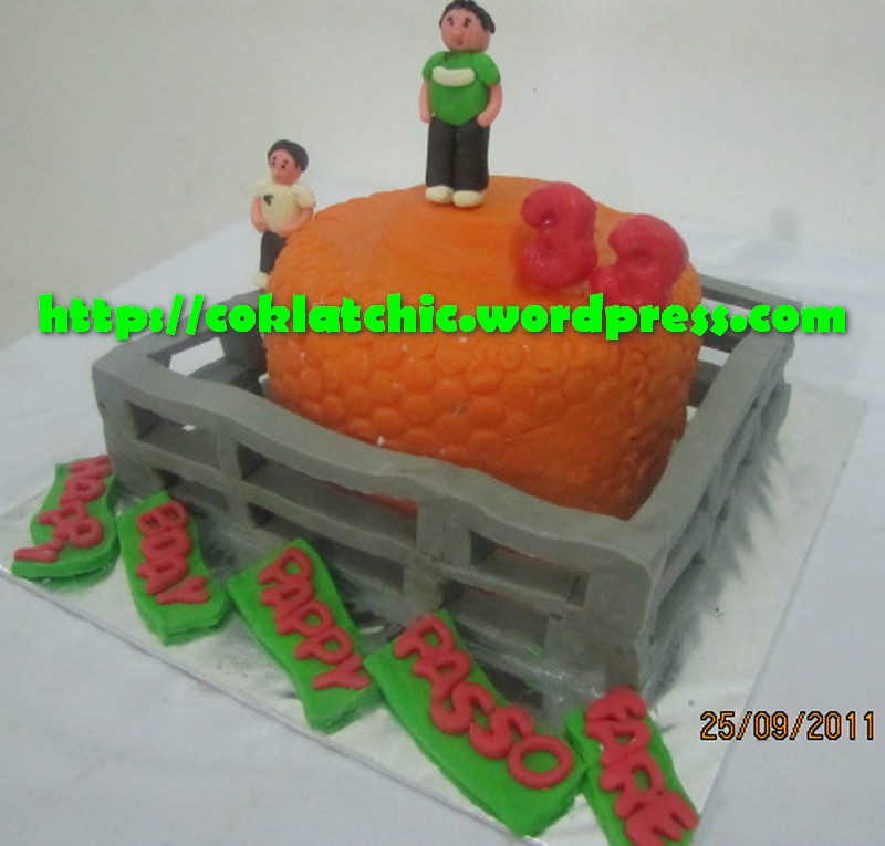 Terbuat dari kue yang dipahat,no styrofoam. Pelapis terbuat dari coklat bukan fondant atau sugar icing. Posted with WordPress for BlackBerry.