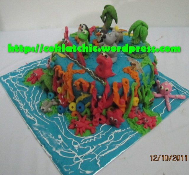 Terbuat dari kue yang dipahat,no styrofoam. Pelapis terbuat dari coklat bukan fondant atau sugar icing. Posted with WordPress for BlackBerry.