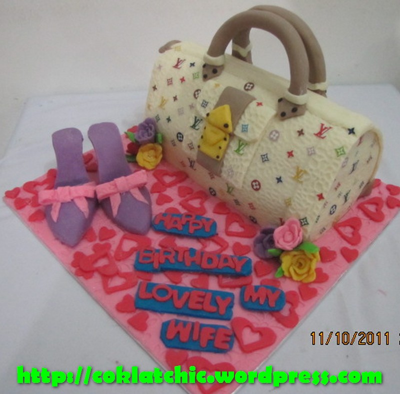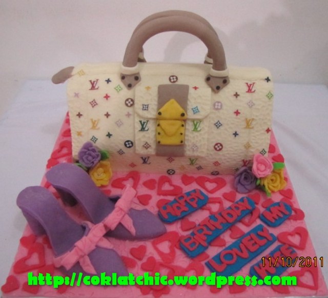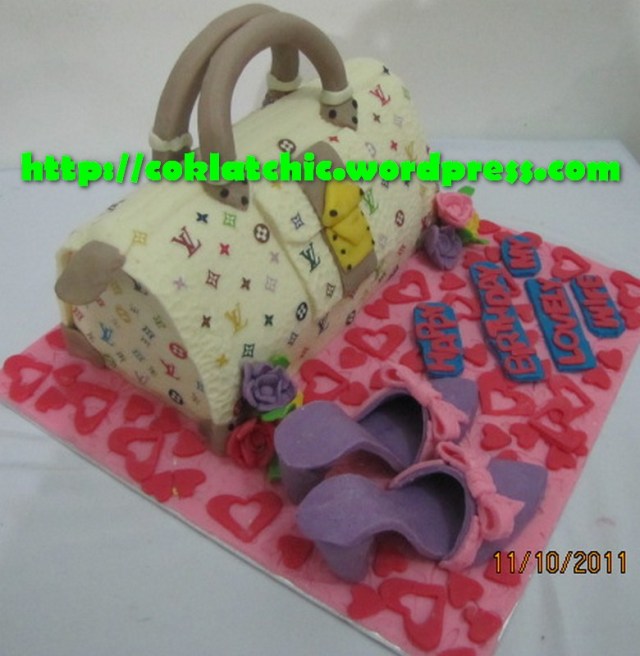 Kue ulang tahun dengan tema Cake tas Louis Vuitton dan high heel model ini mulai dari harga Rp 500 ribu