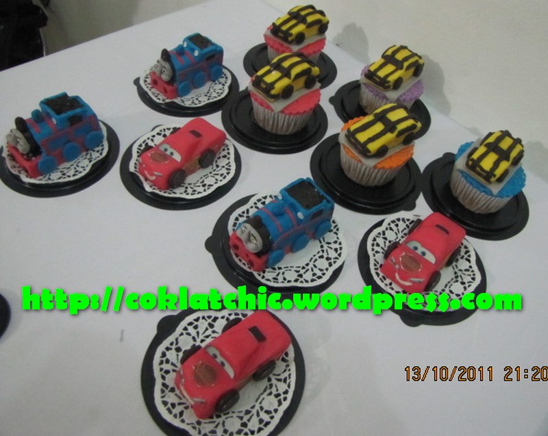 Minicupcake sapi dan minicupcake spongebob ; Cupcake angka dan alphabet ; Cupcake Bumble Bee, minicake mcQueen dan minicake Thomas – FARIZ Terbuat dari kue yang dipahat,no styrofoam. Pelapis terbuat dari coklat bukan fondant atau sugar icing. Posted with WordPress for BlackBerry. Share this: Share on Facebook (Opens in new window) Facebook Like Loading... Related
