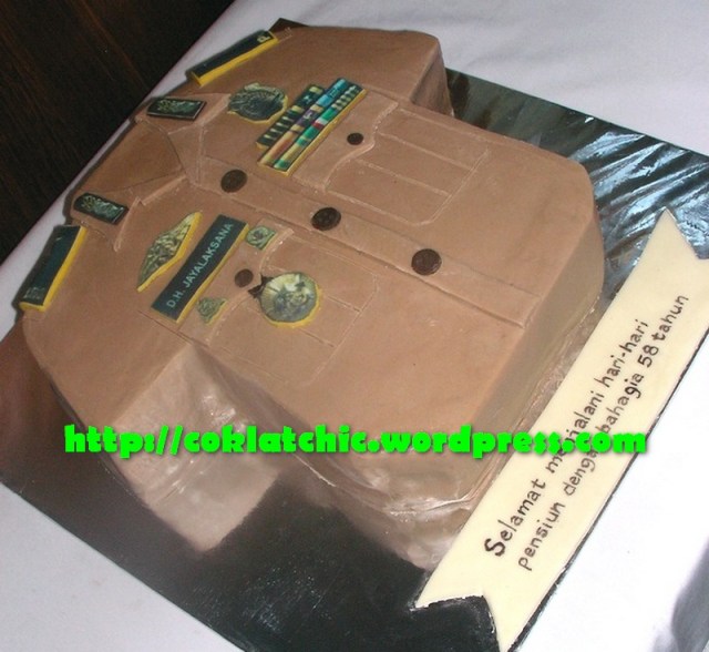 Terbuat dari kue yang dipahat,no styrofoam. Pelapis terbuat dari coklat bukan fondant atau sugar icing. Posted with WordPress for BlackBerry.