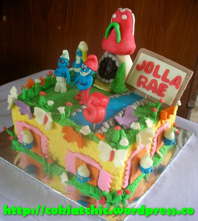 Kue ulang tahun dengan tema Cake Smurf model ini mulai dari harga Rp 300 ribu