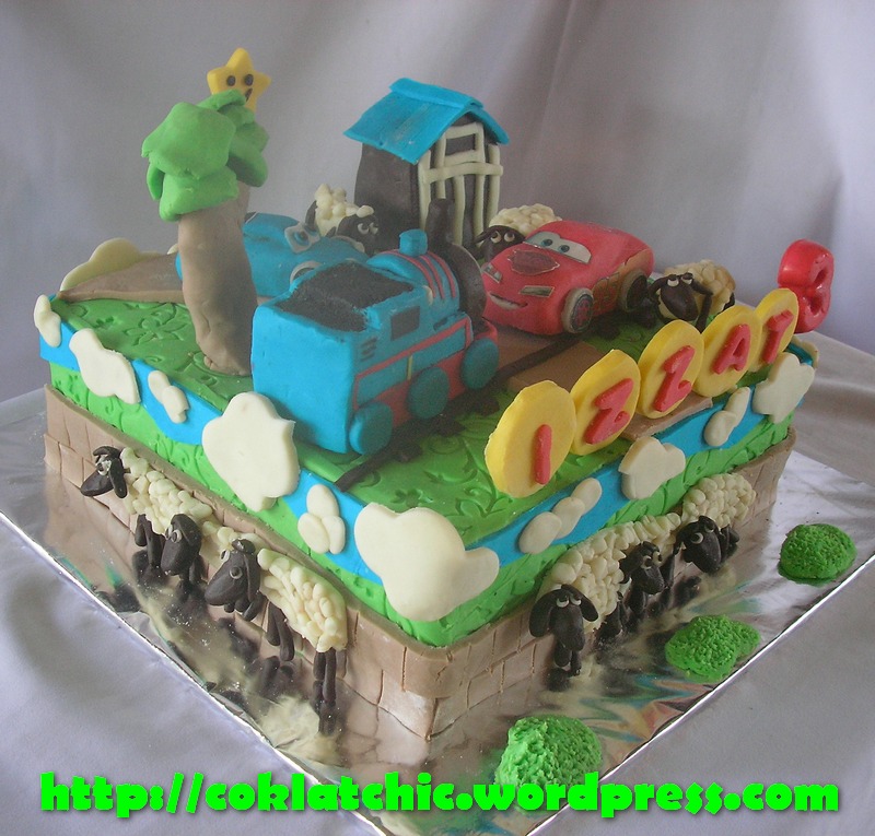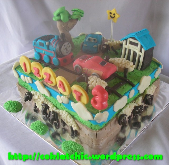 Kue ulang tahun dengan tema Cake Thomas,cars dan shaun the sheep model ini mulai dari harga Rp 400 ribu
