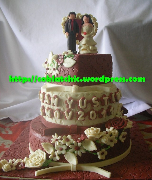 Kue wedding 3 tingkat dengan tema Cake wedding dengan mawar model ini mulai dari harga Rp 1 juta