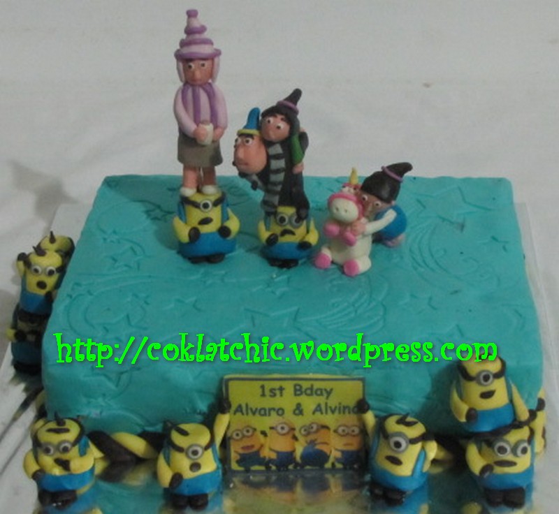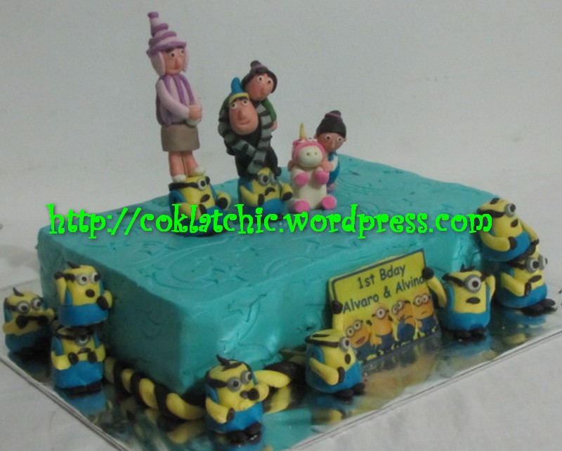Kue ulang tahun dengan tema Cake Despicable Me / Cake Minion model ini mulai dari ukuran 27×18, daftar harga kue dan ukuran https://coklatchic.wordpress.com/daftar-harga-2