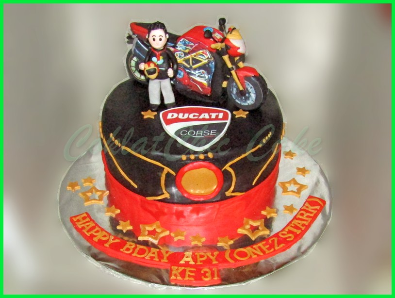 Birthday Cake dengan tema Motor Ducati Ironman, model tersebut mulai ukuran 20 cm , daftar harga kue ulang tahun https://coklatchiccake.com/daftar-harga-2