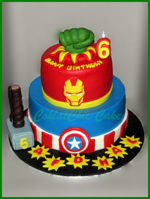 Birthday Cake dengan tema The Avengers , model tersebut mulai ukuran 20 cm dan 12 cm , daftar harga kue ulang tahun https://coklatchiccake.com/daftar-harga-2