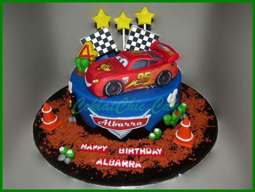 Birthday Cake dengan tema Lightning McQueen Disney Cars, model tersebut mulai ukuran 20 cm , daftar harga kue ulang tahun https://coklatchiccake.com/daftar-harga-2