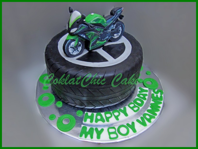 Birthday Cake dengan tema motor Kawasaki Ninja , model tersebut mulai ukuran 18 cm , daftar harga kue ulang tahun https://coklatchiccake.com/daftar-harga-2
