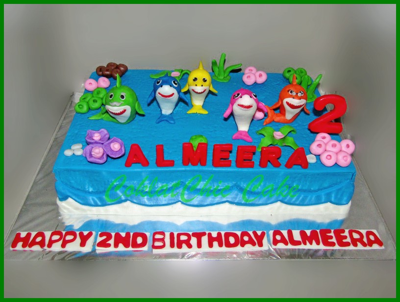 Birthday Cake dengan tema Baby Shark, model tersebut mulai ukuran 20×30 cm , daftar harga kue ulang tahun https://coklatchiccake.com/daftar-harga-2